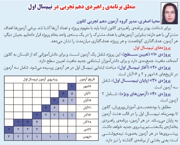 نکاتی در رابطه با آزمون های نیم سال اول دهم تجربی را مشاهده نمایید.