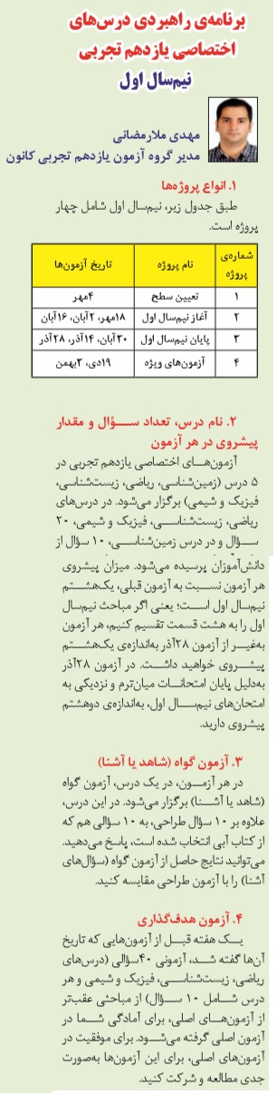 نکاتی در رابطه با آزمونهای نیم سال اول یازدهم تجربی را مشاهده نمایید.