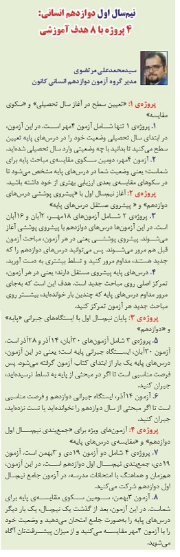 نکاتی در رابطه با آزمونهای نیم سال اول دوازدهم انسانی را مشاهده نمایید.
