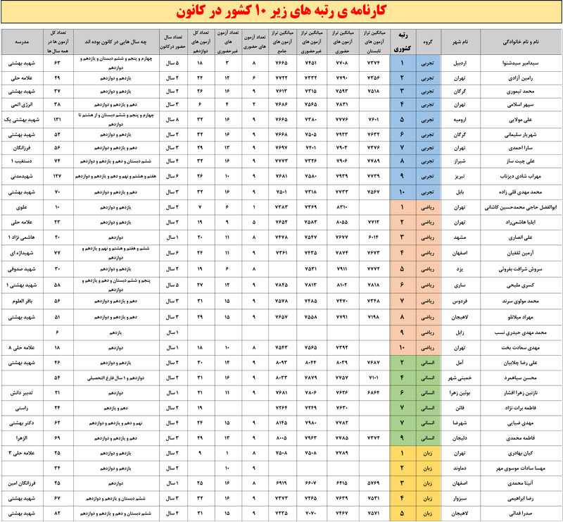 کارنامه رتبه های زیر 10 کشور کنکور 99 در کانون را در ادامه مشاهده کنید...