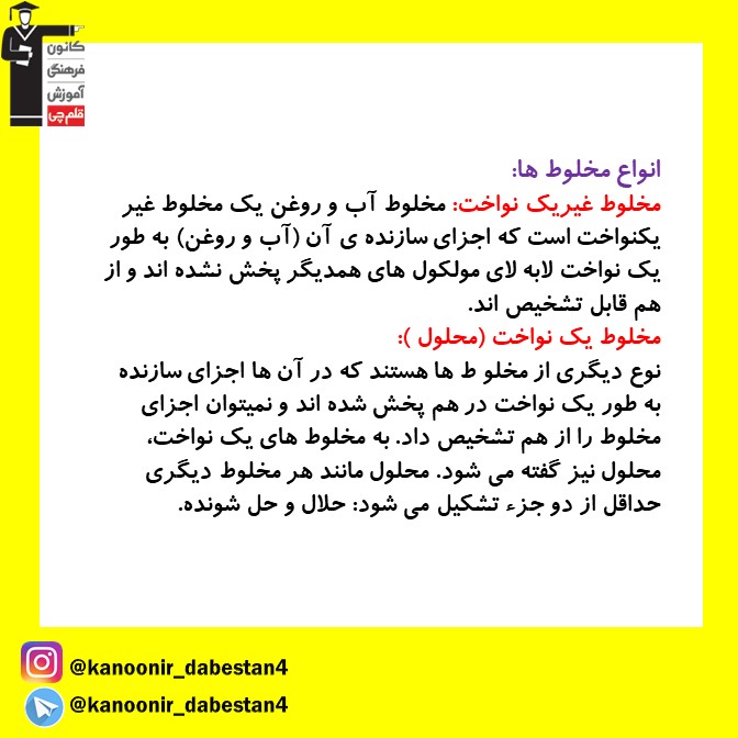 عکس هایی که در ادامه قرار گرفته است،نکات قسمت اول درس دوم علوم چهارم دبستان(مخلوط ها)می باشد ، مطالعهی این نکات و حل مثالهای موجود در آن به یادگیری این مبحث کمک میکند.