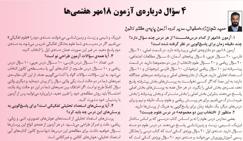 نکاتی درباره آزمون 18 مهر 99