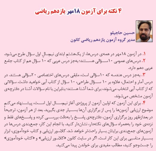 نکاتی درباره آزمون 18 مهر یازدهم ریاضی