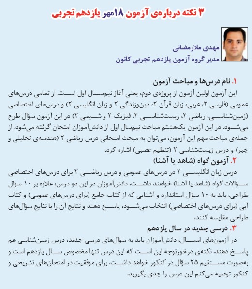 نکاتی درباره آزمون 18 مهر یازدهم تجربی