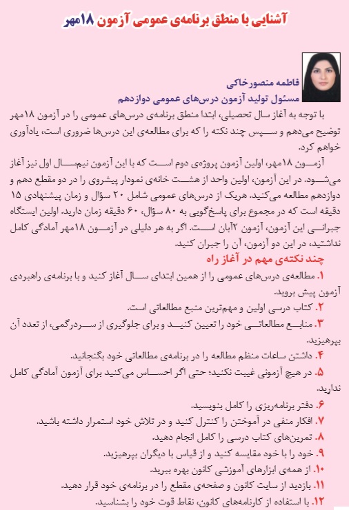 نکاتی درباره آزمون 18 مهر دوازدهم ریاضی را مشاهده نمایید.