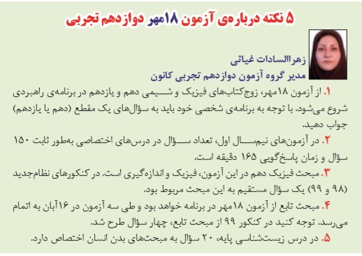 نکاتی درباره آزمون 18 مهر دوازدهم تجربی