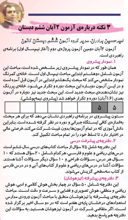 نکاتی درباره آزمون 2 آبان ششم دبستان