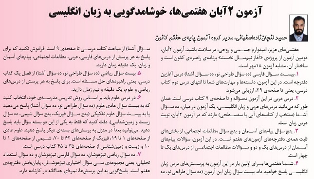 نکاتی درباره آزمون 2 آبان پایه هفتم