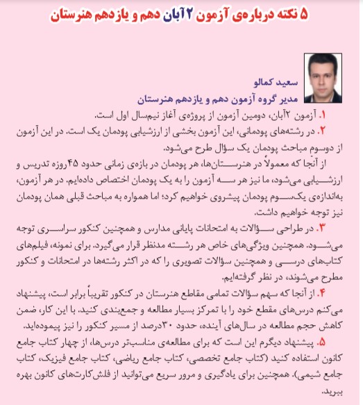 نکاتی درباره آزمون 2 آبان پایه دهم هنرستان را مشاهده فرمایید.