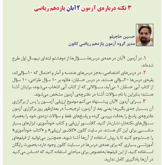 نکاتی درباره آزمون 2 آبان پایه یازدهم ریاضی را مشاهده فرمایید