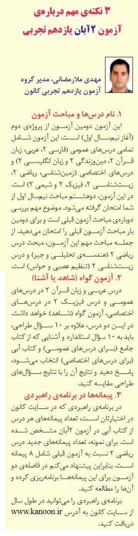 نکاتی درباره آزمون 2 آبان پایه یازدهم تجربی