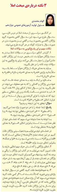 نکاتی درباره آزمون 2 آبان دوازدهم تجربی را مشاهده فرمایید.