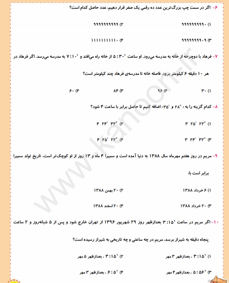 نمونه سوالات ریاضی ویژه آزمون 2 آبان (2)