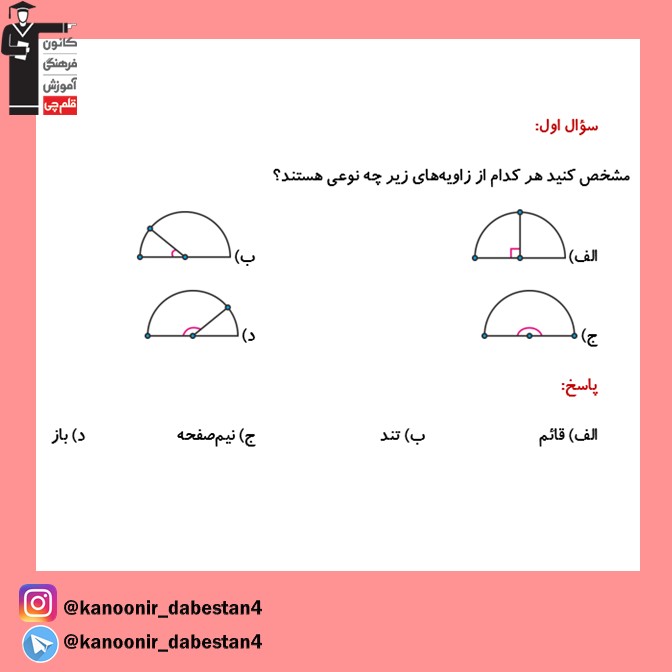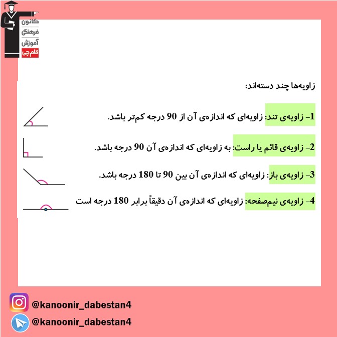 نکات مبحث زاویه فصل چهارم ریاضی چهارم دبستان(همراه مثال)