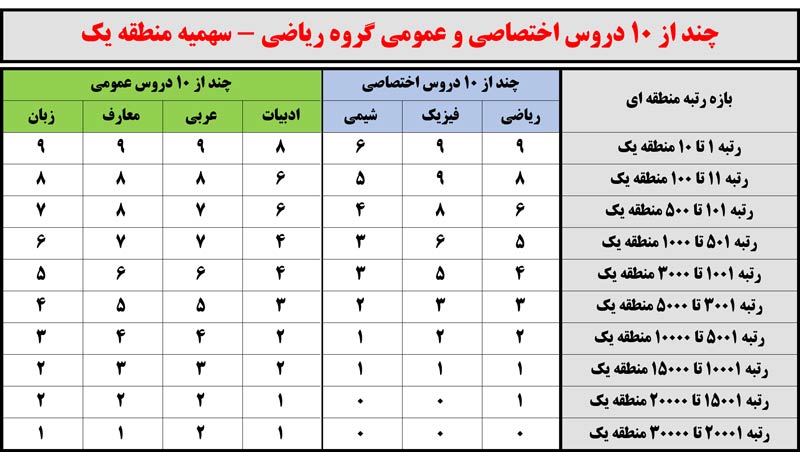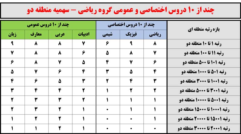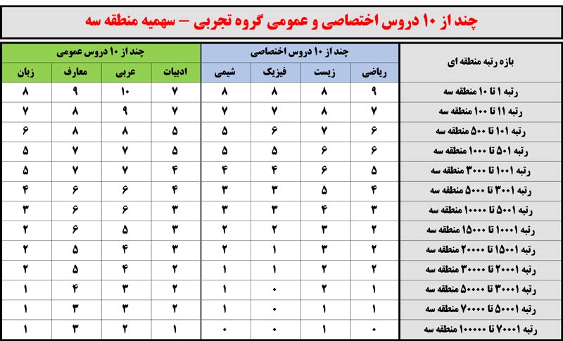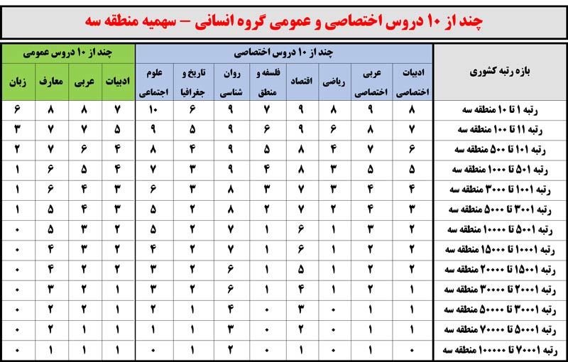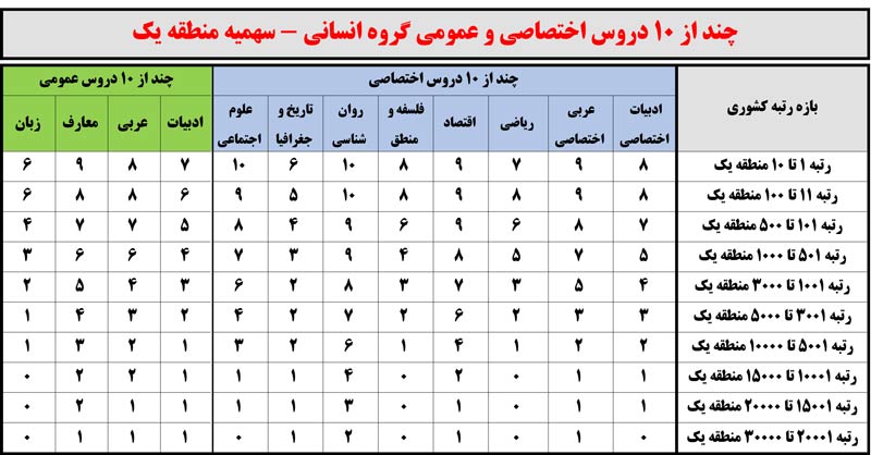 کنکور99: چند از10 دروس اختصاصی و عمومی برحسب رتبه منطقه