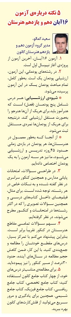 نکاتی در مورد آزمون 16 آبان دهم هنرستان