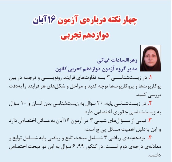 نکاتی در مورد آزمون 16 آبان دوازدهم تجربی