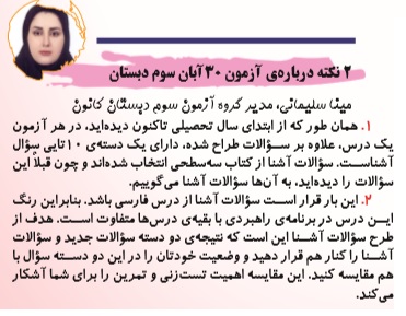 نکاتی در مورد آزمون 30 آبان سوم دبستان
