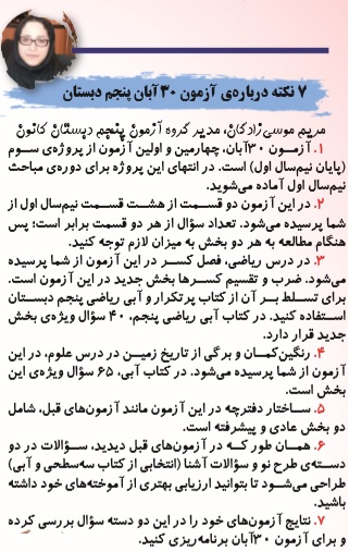 نکاتی در مورد آزمون 30 آبان پنجم دبستان