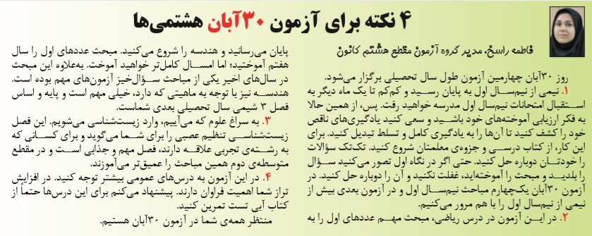 نکاتی در مورد آزمون 30 آبان پایه هشتم
