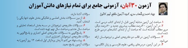 نکاتی در مورد آزمون 30 آبان پایه نهم