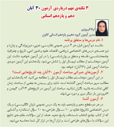 نکاتی در مورد آزمون 30 آبان یازدهم انسانی