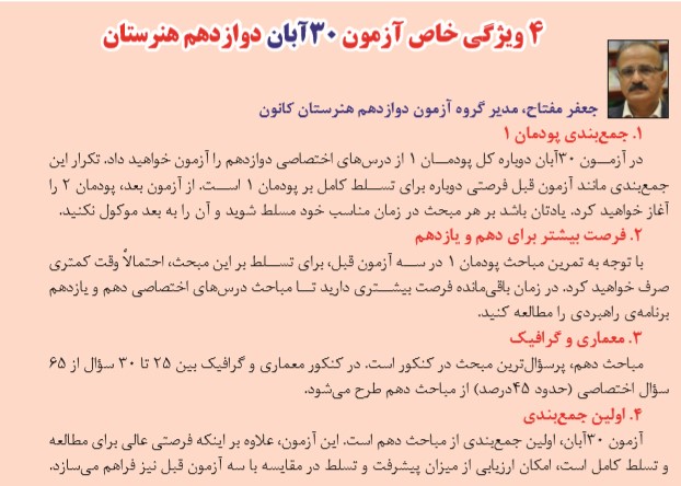 نکاتی در مورد آزمون 30 آبان دوازدهم هنرستان