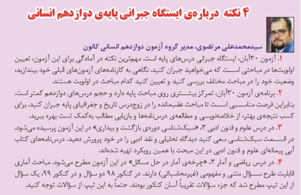 نکاتی در مورد آزمون 30 آبان دوازدهم انسانی