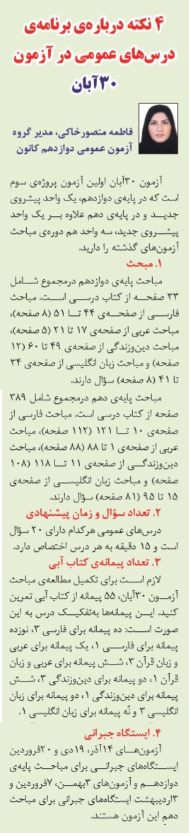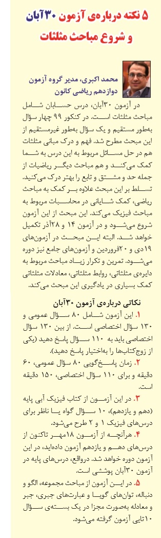 نکاتی در مورد آزمون 30 آبان دوازدهم ریاضی