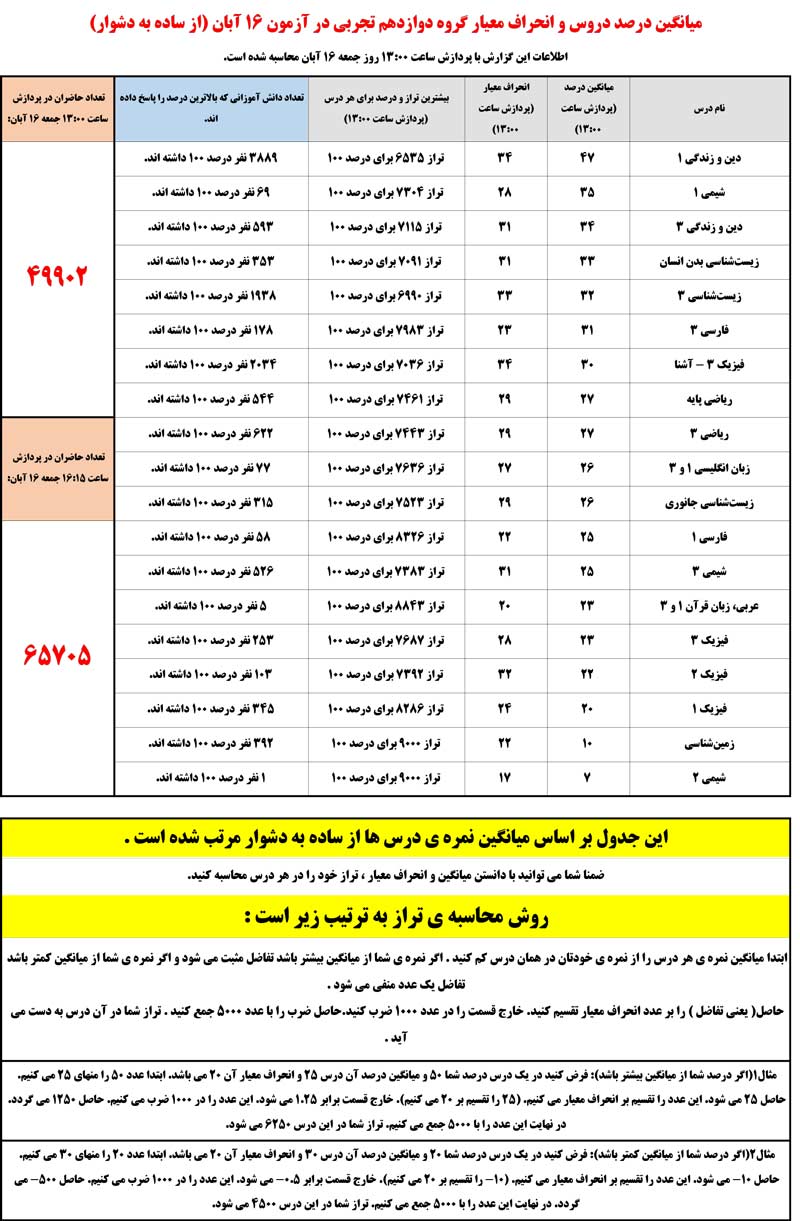 از ساده به دشوار : جدول میانگین وانحراف معیار آزمون 16 آبان 99