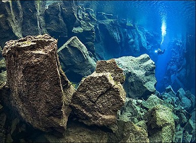 غواصی در حال جستوجو در میان شیارهای قارهای در سیلفار ایسلند