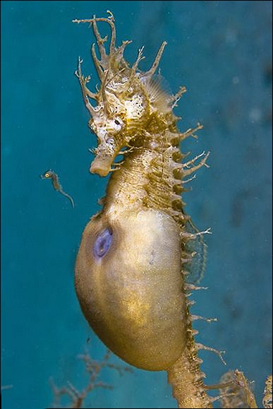 اسبهای آبی نر در حدود دوهزار اسب آبی کوچک را بهمدت 10 تا 25 روز با خود حمل میکنند و سپس فرزندان متولد میشوند.