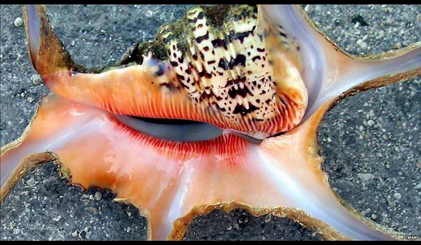 این صدف حلزونی عنکبوتی که حلزون دریایی بسیار بزرگی است، در آبهای محدودهي چین پیدا شده است. این موجود میتواند از نظر طولی بیش از 30 سانتیمتر رشد کند.
