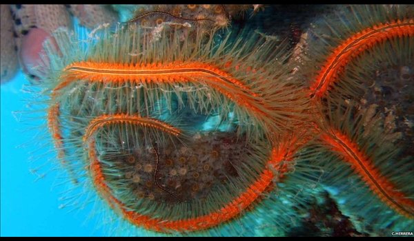 این ستارهي شکنندهي اسفنجی در آبهای کارائیب دیده شده است.