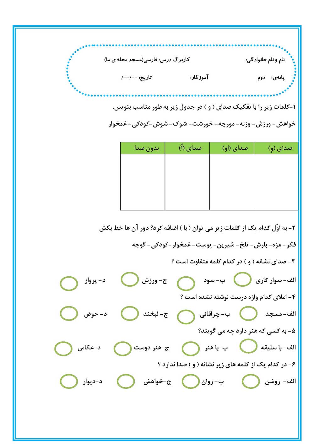 در این کاربرگ نکات مهم دستوری درس دوم در قالب تمرین درج شده است.