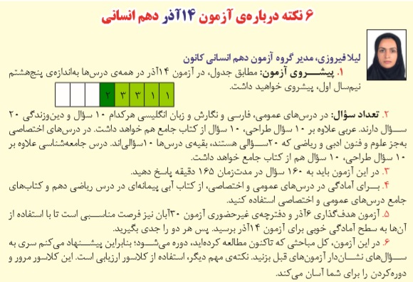نکاتی درباره آزمون 14 آذر دهم انسانی