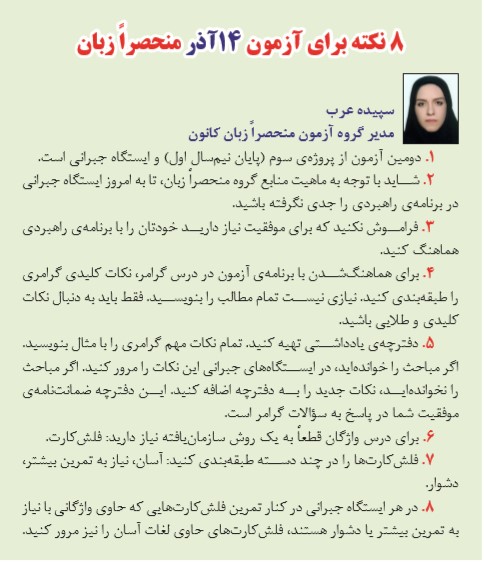 نکاتی درباره آزمون 14 آذر منحصرا زبان را مشاهده نمایید.