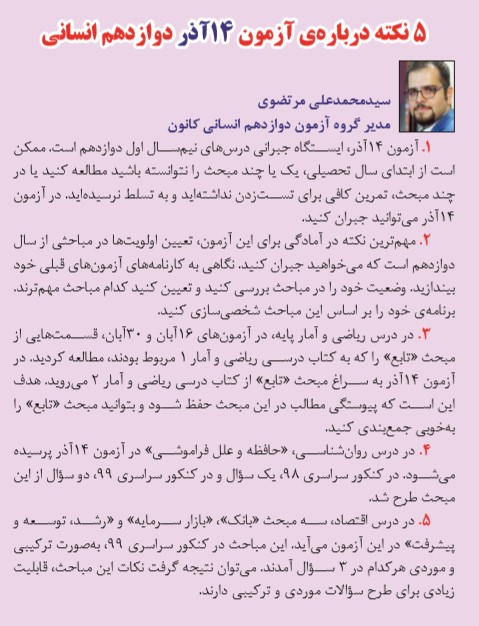 نکاتی درباره آزمون 14 آذر دوازدهم انسانی