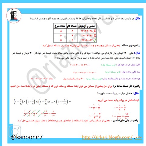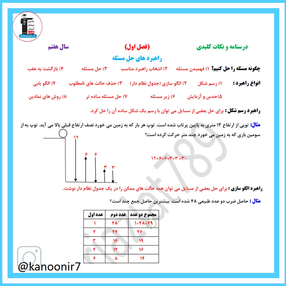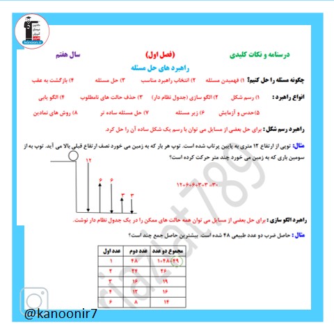 درسنامه فصل اول ریاضی هفتم- مبحث راهبردهای حل مسئله