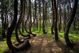 در نگاه اول به نظر می رسد این تصویر از کتاب هری پاتر گرفته شده اما این درخت ها کاملا طبیعی هستند که در سال ۱۹۳۰ کاشته شده اند. تمام درختان این جنگل به سمت زمین خمیده هستند و هنوز هم کسی نتوانسته علت آن را کشف کند.
