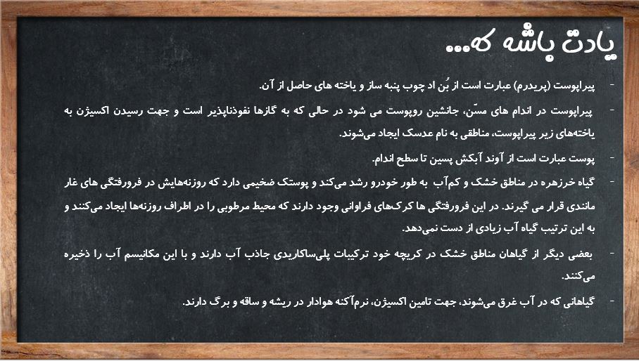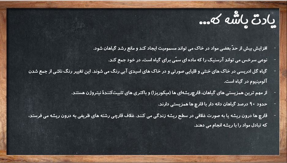 پاسخ کامنت سپیده نجفى - گروه آزمون: رشتههای قارچریشهای میتواند به درون ریشه گیاه نفوذ کند و مواد معدنی را در اختیار گیاه قرار دهد بدون اینکه نیاز باشد ریشه از طریق روپوستش این مواد را از خاک جذب کند - تاریخ ثبت: 13990824