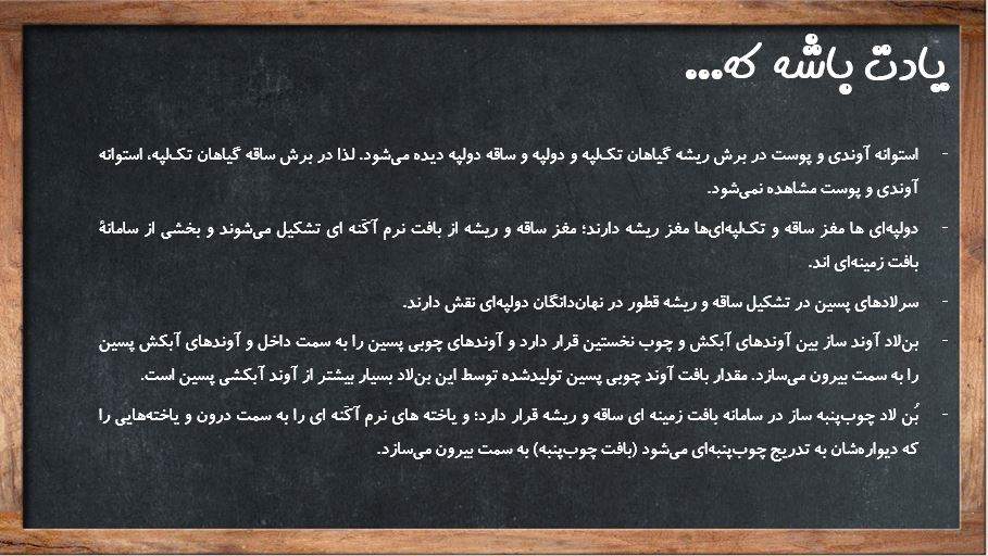 کامنت کاربر: از کجای کتاب برداشت میشه که بخش خارجی پوست گیاه تک لپه، عمدتا از یاختههای کلانشیمی تشکیل شده؟ - تاریخ ثبت: 13990824