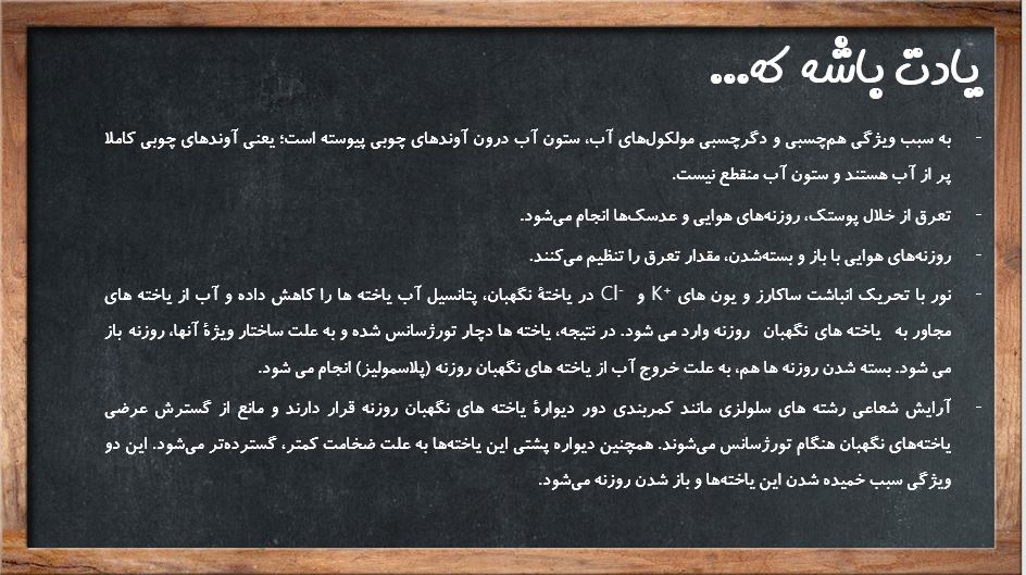 پاسخ کامنت سپیده نجفى - گروه آزمون: طبق متن کتاب،در محل لان دیوارهی سلولی نازک میشه و طبق شکل ،در سلولی که دیوارهی پسین داره،در محل لان،این نازک شدگی دیواره به شکل فقدان وجود دیوارهی پسین در آن محله - تاریخ ثبت: 13990824