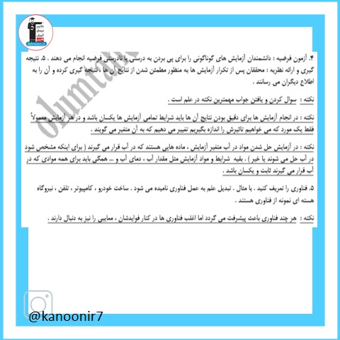نکات مهم درس اول علوم هفتم - تجربه و تفکر