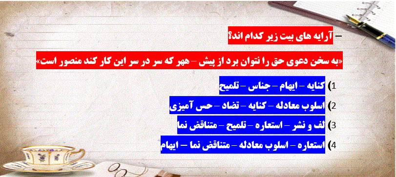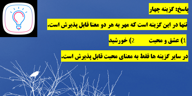 لطفا پاسخ دو تست بالا را در بخش کامنت ها با دوستانتان به اشتراک بگذارید.(با دلیل)