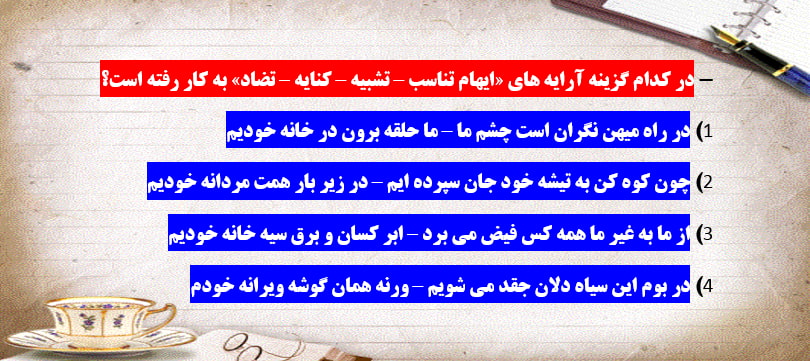 در این مطلب قصد داریم دو مورد از آرایه های چالشی کنکور یعنی ایهام و ایهام تناسب را با هم مرور کنیم و با استفاده از مثال های فراوان یادگیری های گذشته را تکمیل کنیم.