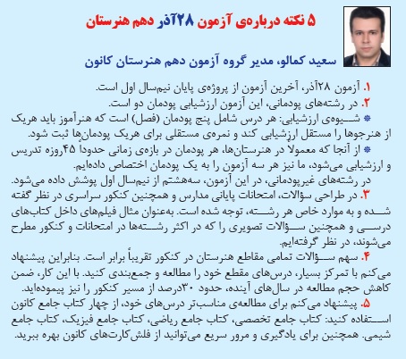 نکاتی در مورد آزمون 28 آذر دهم هنرستان
