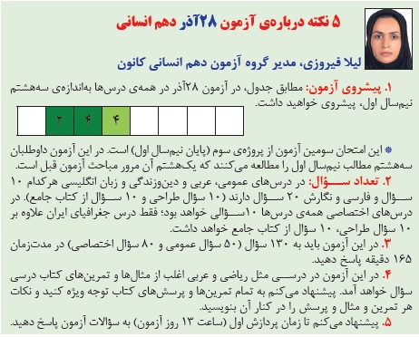 نکاتی در مورد آزمون 28 آذر دهم انسانی