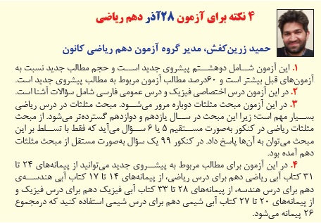 نکاتی در مورد آزمون 28 آذر دهم ریاضی