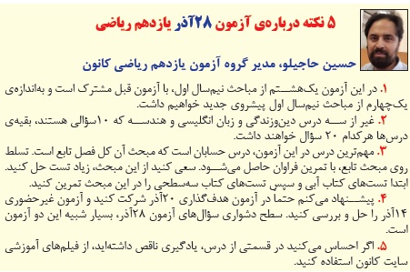 نکاتی در مورد آزمون 28 آذر یازدهم ریاضی